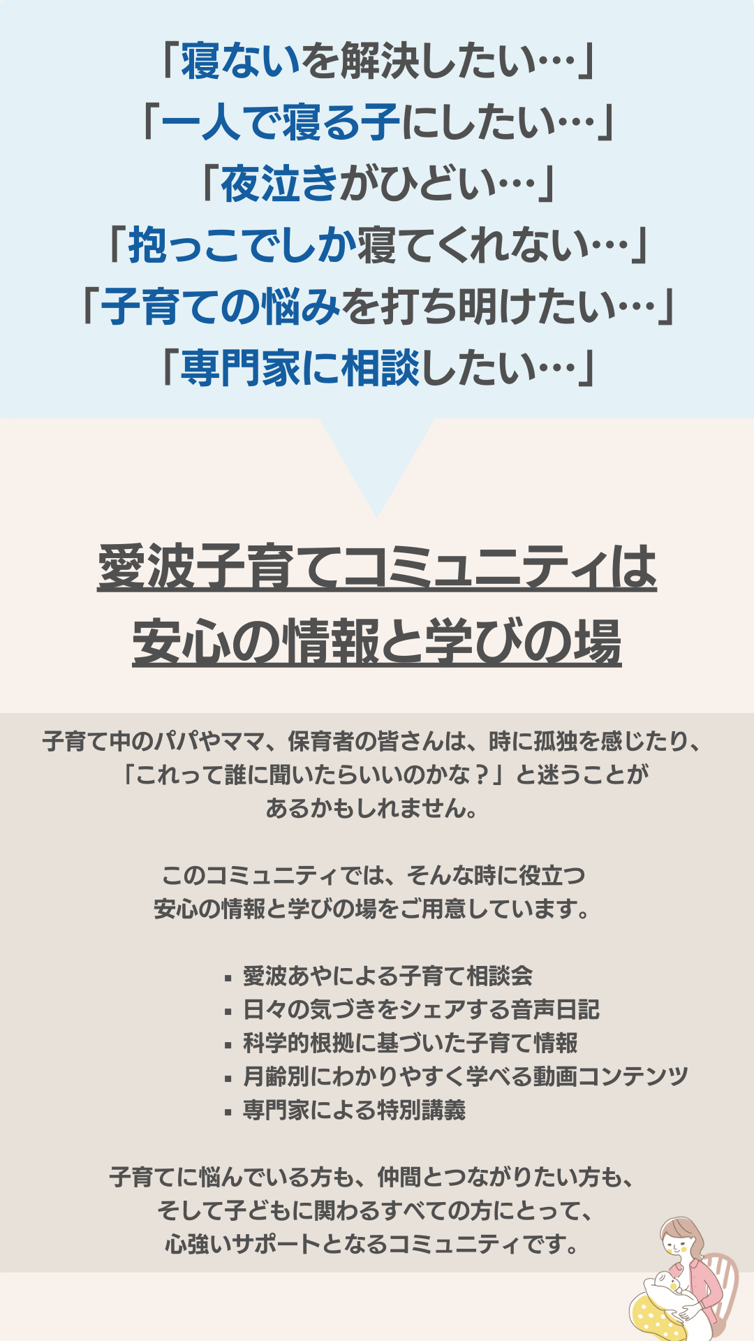 Q 愛波子育てコミュニティでねんね改善は出来ますか?